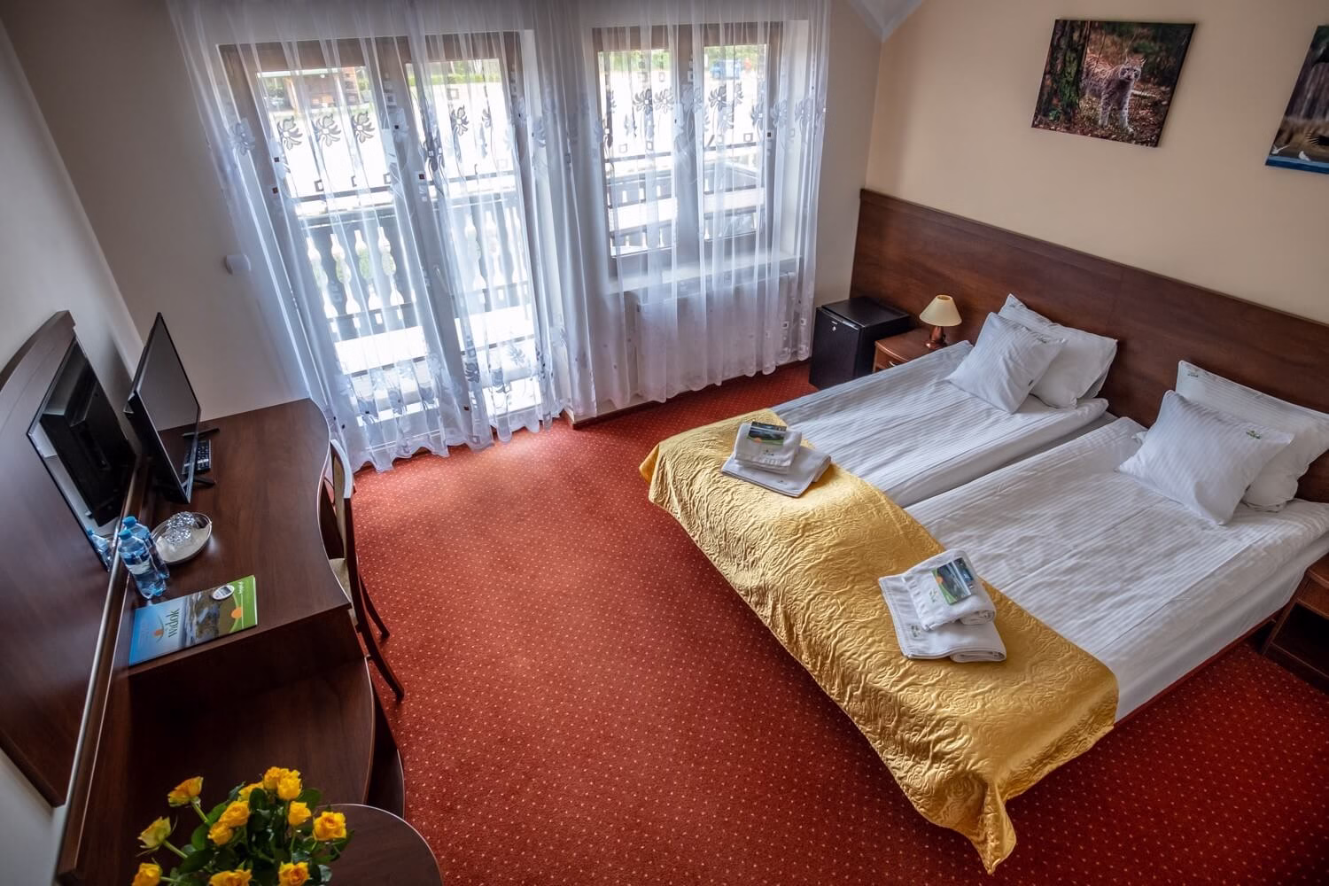 We offer you a beautifully located facility with hotel-standard rooms. We offer 12 double rooms. Most rooms have terraces with a grassy garden or balconies with a stunning view of Lake Wigry. All rooms have bathrooms and wireless Internet access.